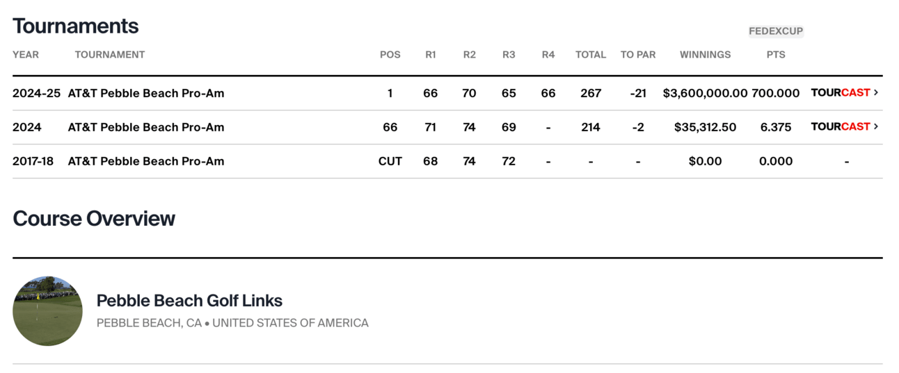 Last week was the 78th time Pebble Beach has hosted this event. 33 times, the winner was (or became) a Masters champion. 42% of the time, Pebble crowned a Masters champ, or someone who was about to need more closet space.