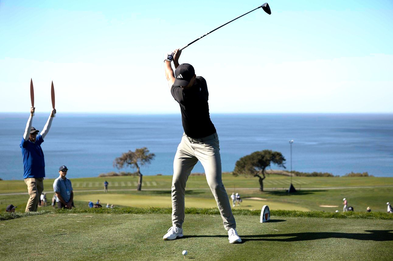 Ludvig Åberg letting it fly on the par-5 6th at Torrey Pines (South)